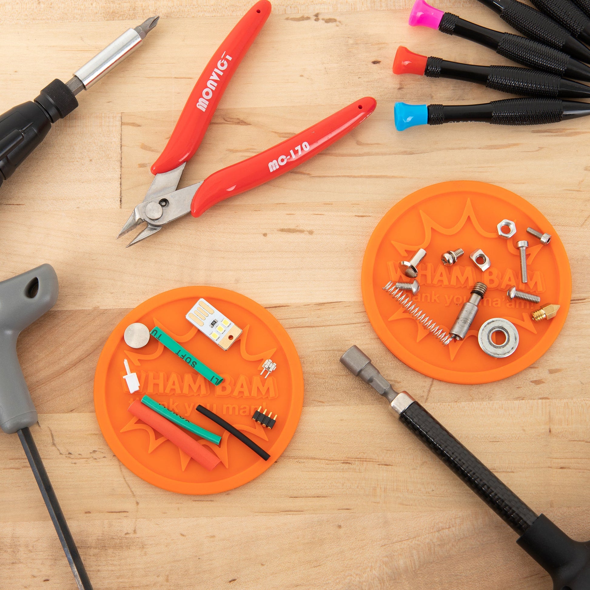 The Mini Slap is a convenient way to add quick protection to your surfaces where and when you need it the most! Made of pure 100% first-grade silicone, the Mini Slap will not be harmed by resins, most chemicals, your hot nozzle, or melted solder! Each Mini Slap measures 92mm round and each 4-pack includes two "thank you ma'am" and two "thank you man" versions!
