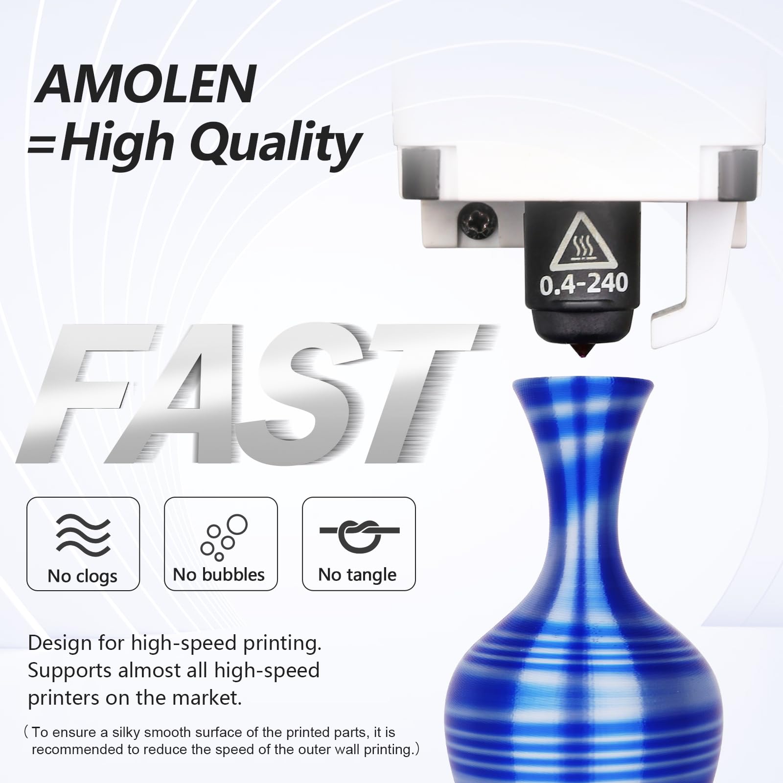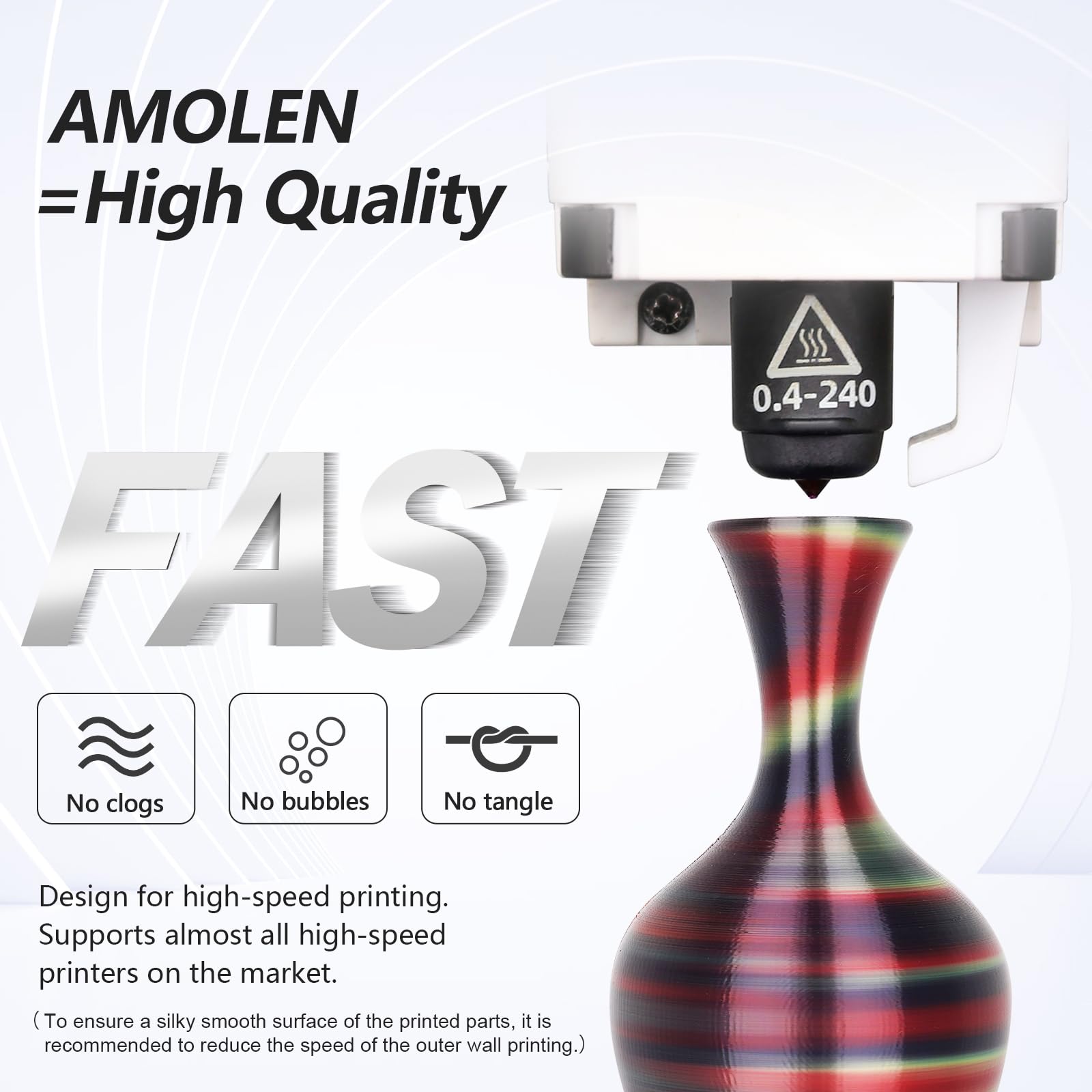 - No bubbles, jams, warping, or clogs.